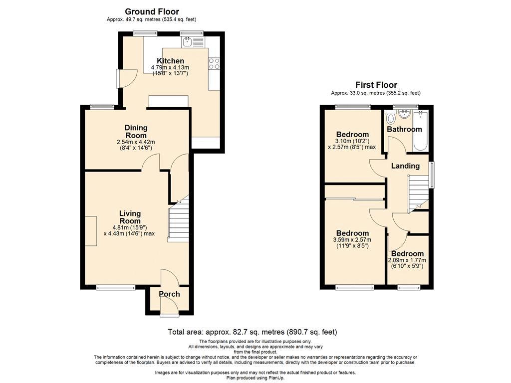 Bedroom Three6' 10'' x 5' 10'' (2.09m x 1.77m)