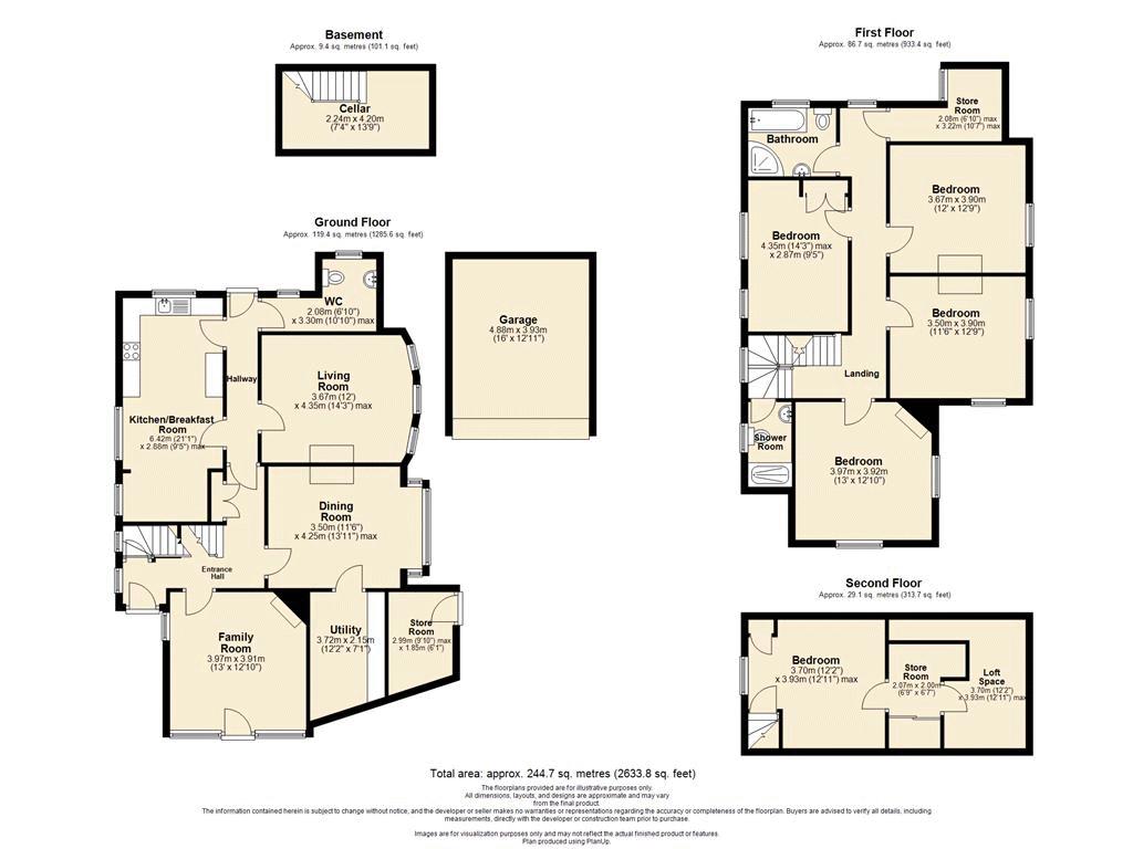 In brief the property benefits from gas central heating, striking elegant windows and feature fireplaces throughout, storm porch, entrance hallway with feature tiling and modern W.C., front reception room, sitting/dining room, living room, kitchen/breakfast room with quality solid kitchen, separate utility, cellar, spacious useful storage room. On the first floor are four generous sized bedrooms with numerous large sash windows and useful store, attractive family bathroom with quality fittings and separate shower room with feature tiling. On the second floor is a advantageous spacious loft/bedroom room with storage room which previously was used as a shower room. To the rear is a generous private garden enclosed by perimeter brick walling and side access to the front where a well maintained driveway allows access for numerous vehicles. Sitting proud a detached timbre garage with electric roller shutter door is a most useful addition to the property. Viewing is recommended to appreciate the high accommodation on offer and to save disappointment.